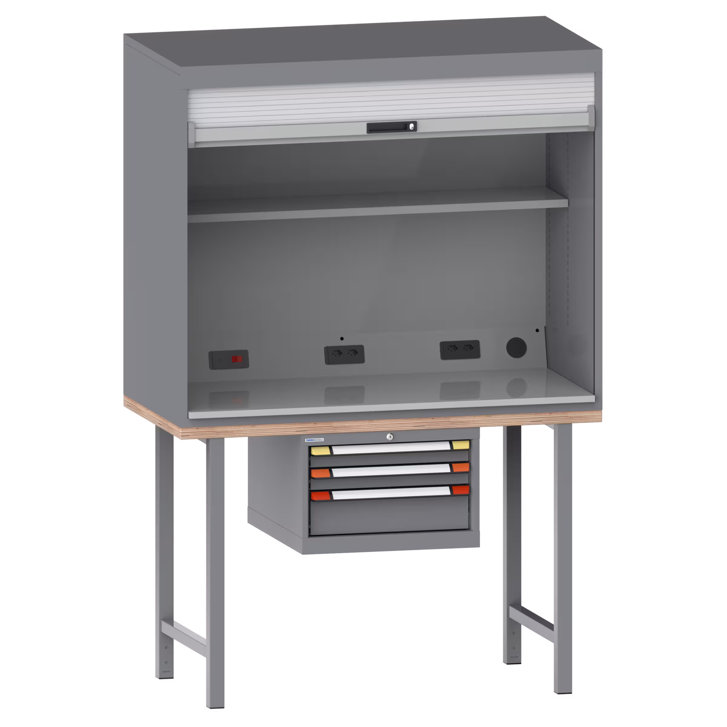 Quality Station (BxTxH) 1434x725x2140mm, 3 Schubladen (2x75/1x150mm) ,Typ DE/Schuko , KEY Lock, Taubengrau NCS S 4502-B