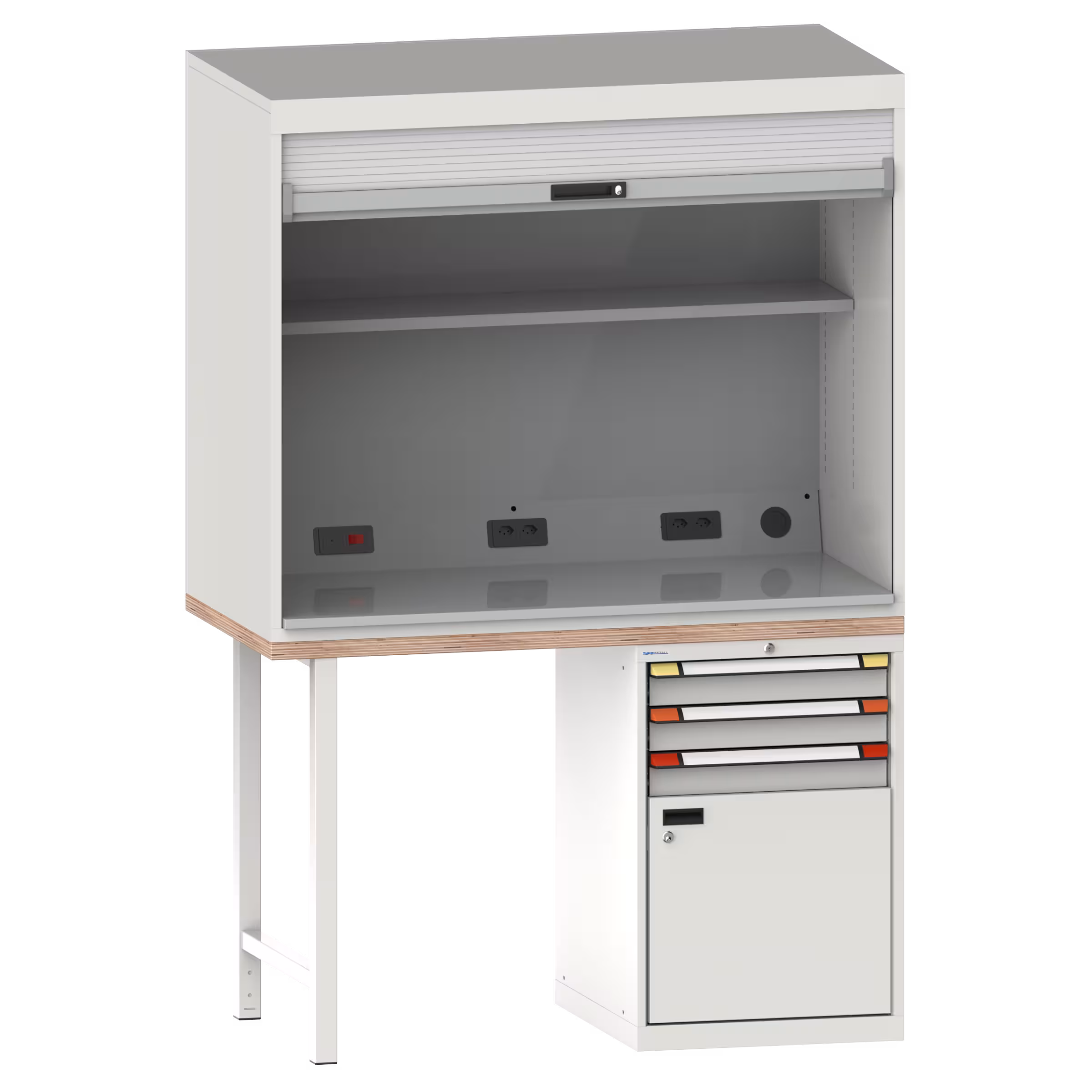 1x Unterbauschrank mit 3 Schubladen (3x FH100, 75kg) & Materialfach mit Flügeltüre (FH500)