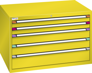 Schubladenschrank (BxTxH) 1205x695x800 mm 5 Schubladen (2x100/2x150/1x200) 200 kg KEY Lock Verkehrsgelb RAL 1023