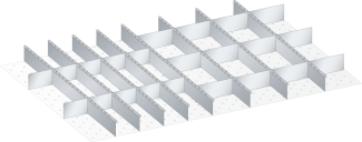 Set Schlitzwände und Trennbleche (BxT) 1100x600 mm FH 100,125 mm 8 Schlitzwände, 22 Trennbleche