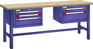 Werkbank (BxTxH) 2500x700x850 mm 5 Schubladen (2x75/1x100/1x150/1x200) 75 kg Buche KEY Lock Ultramarinblau RAL 5002