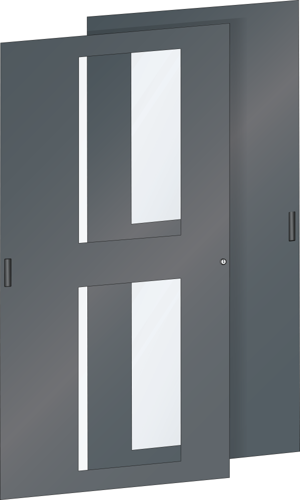 Sliding doors: The sliding doors in solid sheet or with viewing window are folded multiple times and reinforced and come with a recess for the KEY Lock locking system. The ball bearing mounted door castors run quietly on the guide rails.