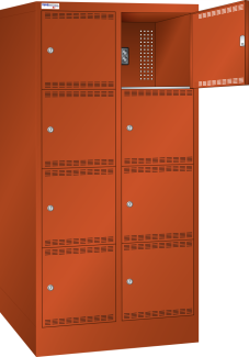 Armoire de charge de batterie avec casiers (LxPxH) 810x580x1790 mm 2x4 casiers Type FR/BE 1x230V,1xUSB-C Serrure DIAL Lock 58 FreeCode Rouge feu RAL 3000